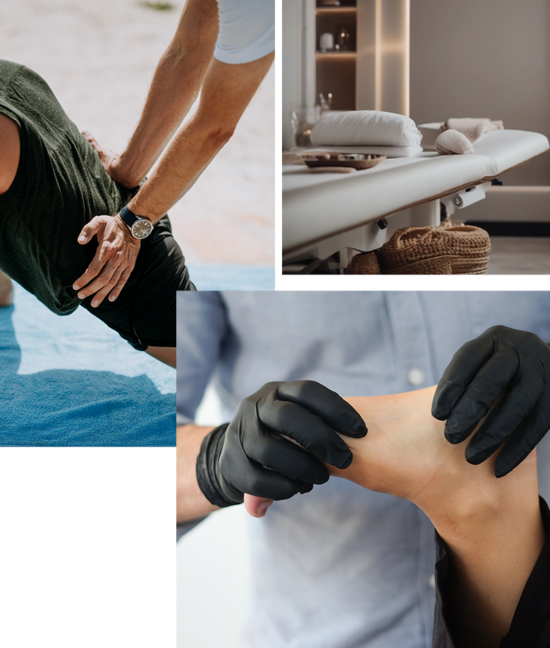 La physiothérapie utilise une gamme de techniques comprenant des programmes d’exercices spécifiques, de la thérapie manuelle (manipulations, drainage, massage) et des facilitateurs matériels (taping, élastiques, outils d’équilibre) pour aider à réduire la douleur associée à diverses conditions pathologiques ou aider à en combattre les effets secondaires (blessures sportives, troubles musculosquelettiques et atteintes neurologiques).